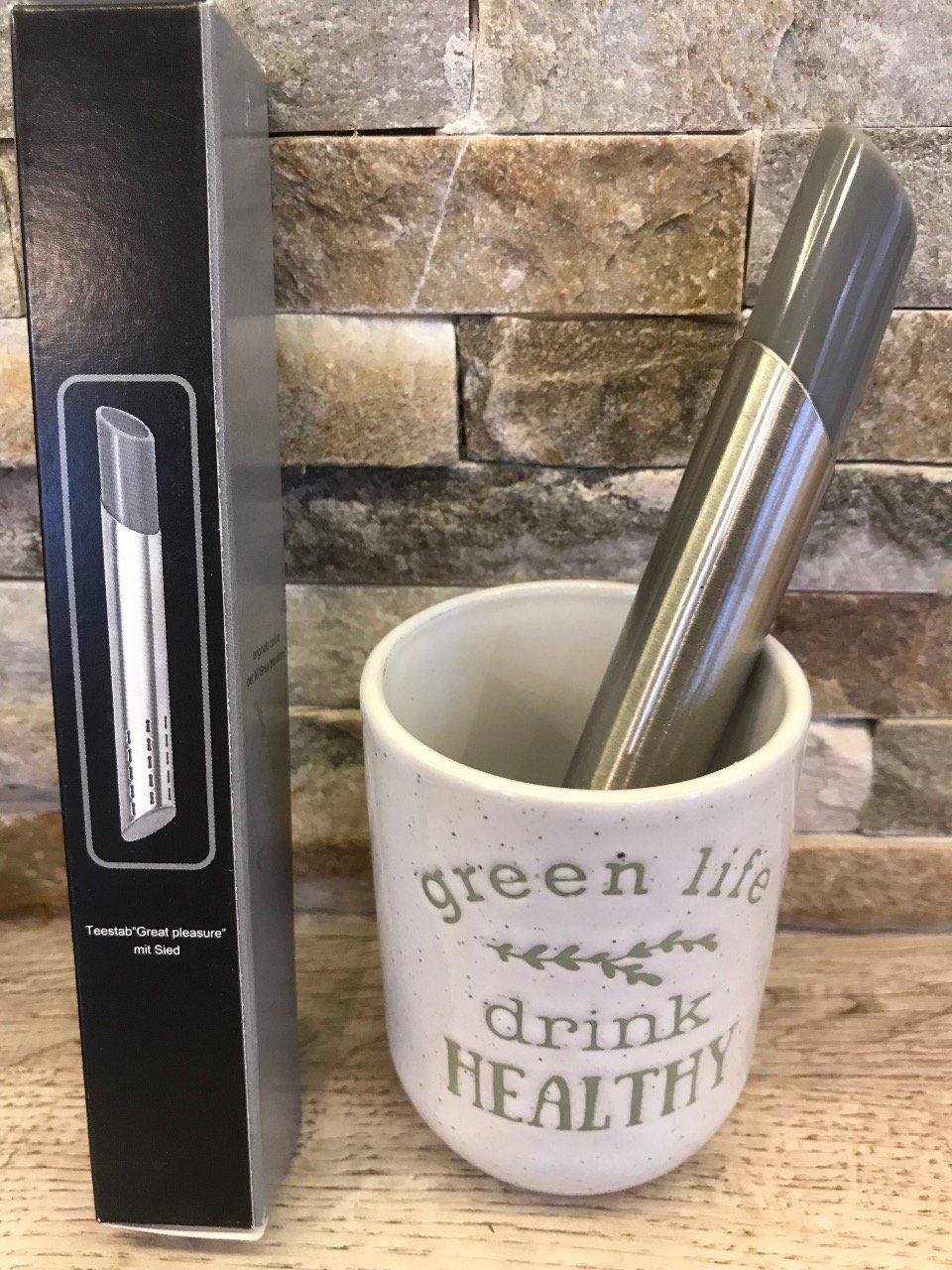bâton à infuser en inox et plastique, pratique pour les petites infusions avec son tiroir.