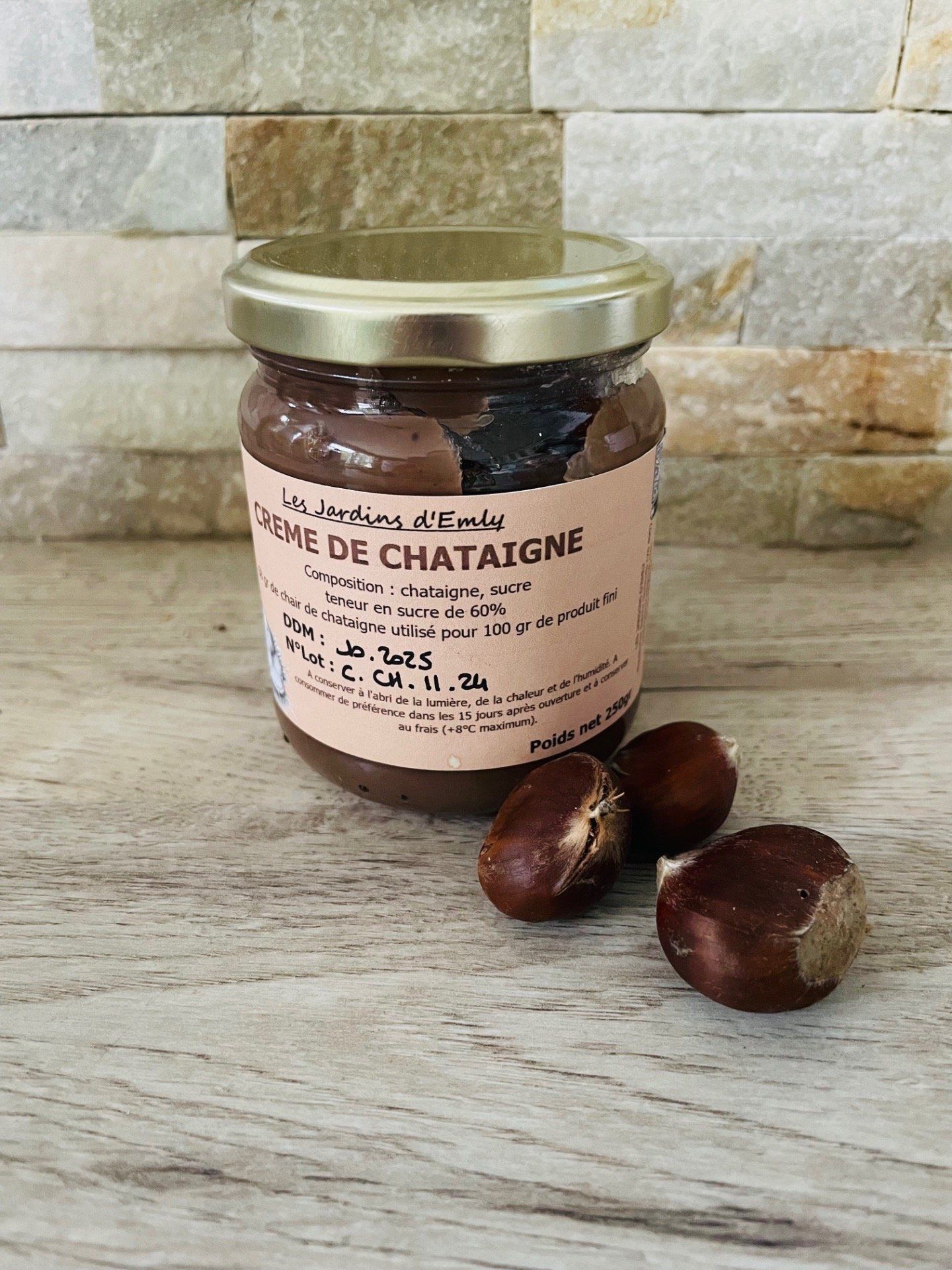 Crème de châtaigne composée de 100% de chair qui donnera ce goût onctueux et crémeux en bouche!!!