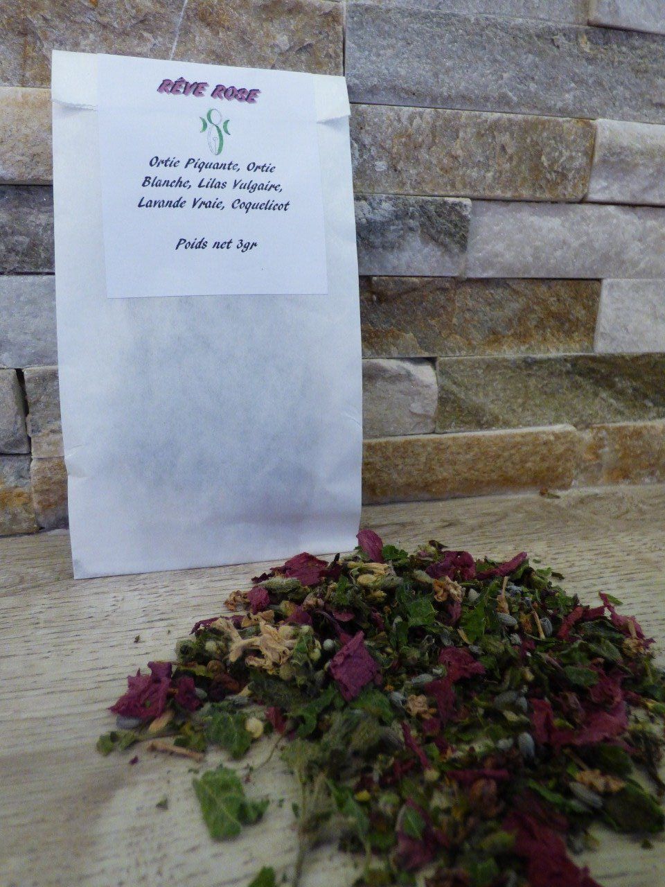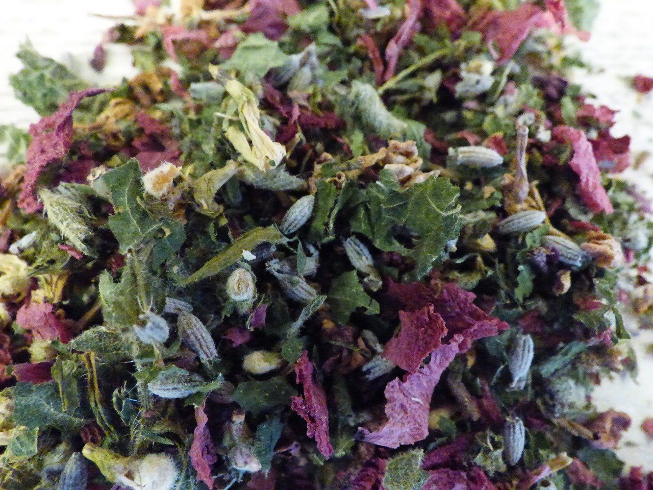 composition : Ortie Piquante, Ortie Blanche, Camomille Allemande, Lilas Commun, Coquelicot et Lavande Vraie.