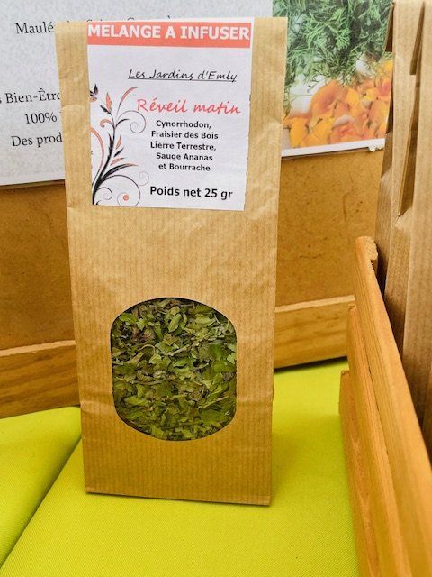 Composition : Cynorrhodon en poudre, feuilles de Fraisier des Bois, Lierre Terrestre, Sauge Ananas et fleurs de Bourrache.